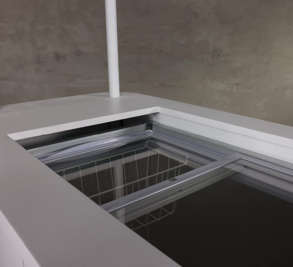 Cart comes with a regular chest freezer that requires power.